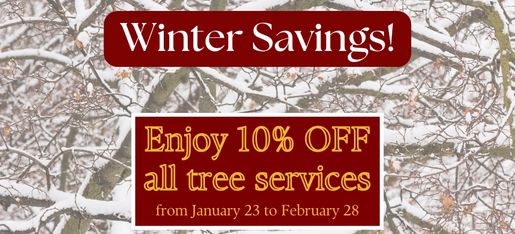 Enjoy 10% OFF on all tree services from 01/23/2026 to 02/28/2026.